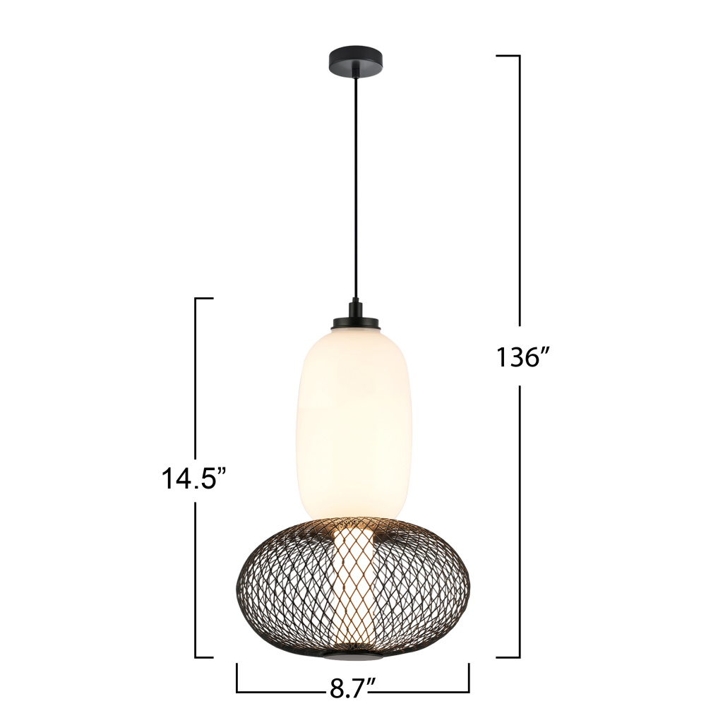 Elevate your space with the sophisticated charm of the Ace LED single pendant. This masterpiece combines an opulent white glass shade with a bold black mesh design, encasing a radiant LED tube that casts a warm, inviting glow. Its rich black metalwork and adjustable wire offer timeless elegance with versatile functionality, making it a perfect centerpiece for any setting.
