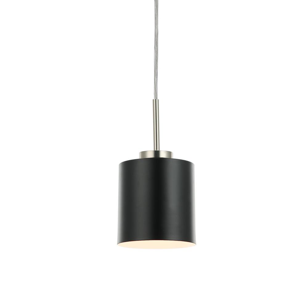 90" Cord -The Andel Pendant Light features a Matte Black metal dome shade with Clear Cord & Satin Nickel Finish