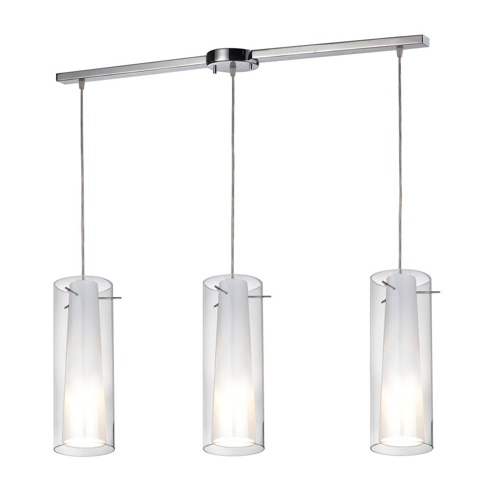 Modern 3 Light Mini-Pendant with Clear outer & White Inner Glass & Satin Nickel Hardware. 36" length x 4.5" width 3 port rectangle canopy