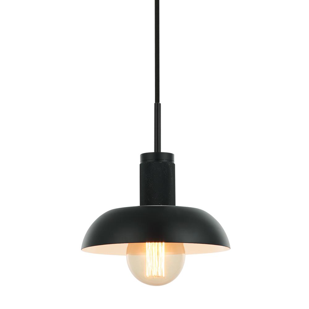 90" Cord -The Aurora Pendant Light features a matte black metal dome shade with Black Cloth Cord & Black Finish