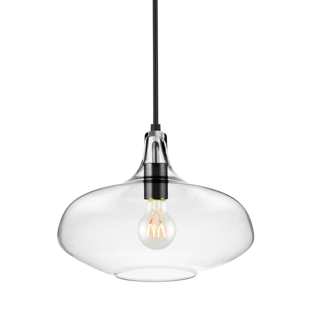 1 Light Clear Glass Pendant with 2x12" & 2x6" threaded Black Rods 4.75" diameter Canopy.