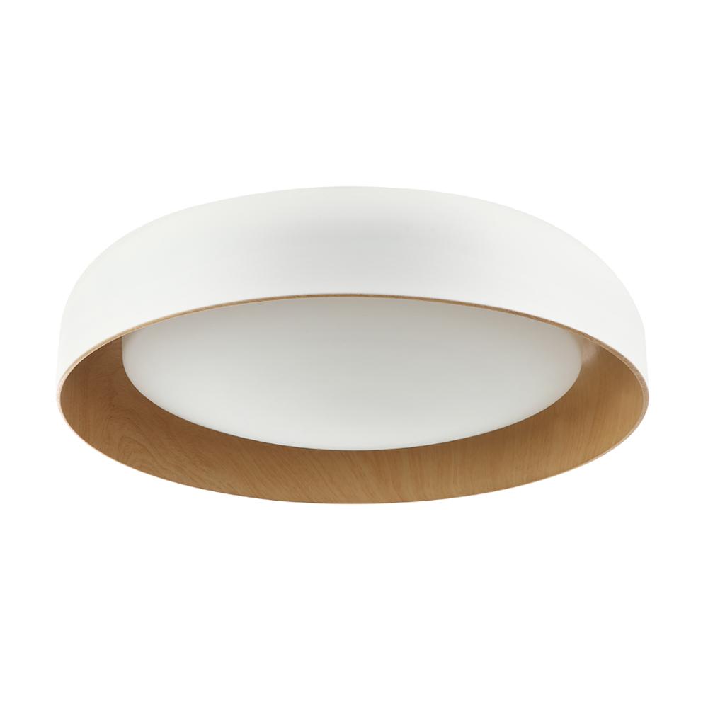 20" 3 Light Flush Mount Ceiling fixture with Satin White Glass & White/Birch Metal Trim