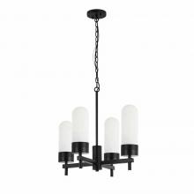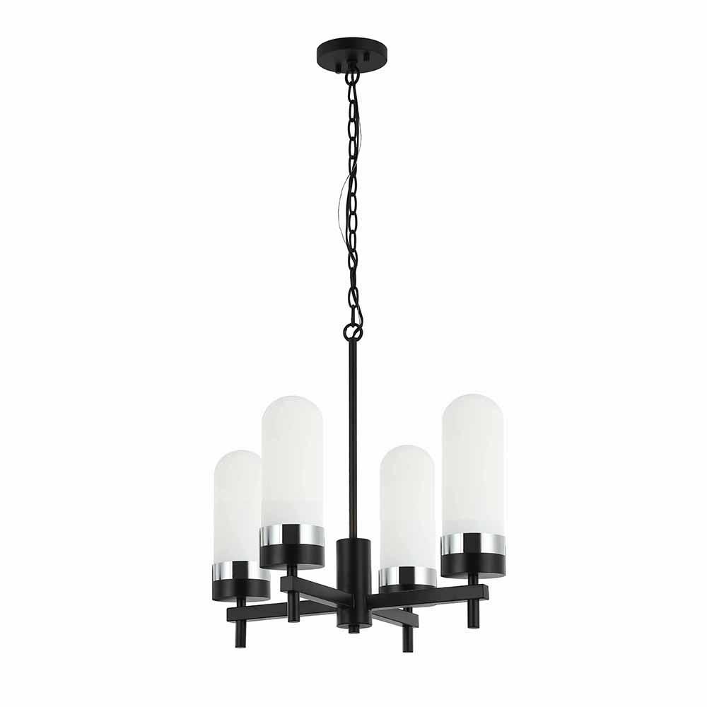 4 Light - Black Chain & Polished Chrome Canopy Chandelier with Satin White Cylinder Glass in Black/Polished Chrome Finish