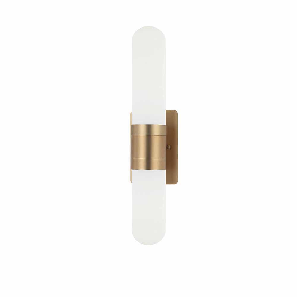 Tall & Short Glass - Vertical or Horizontal Wall Sconce with Satin White Cylinder Glass in Aged Brass Finish
