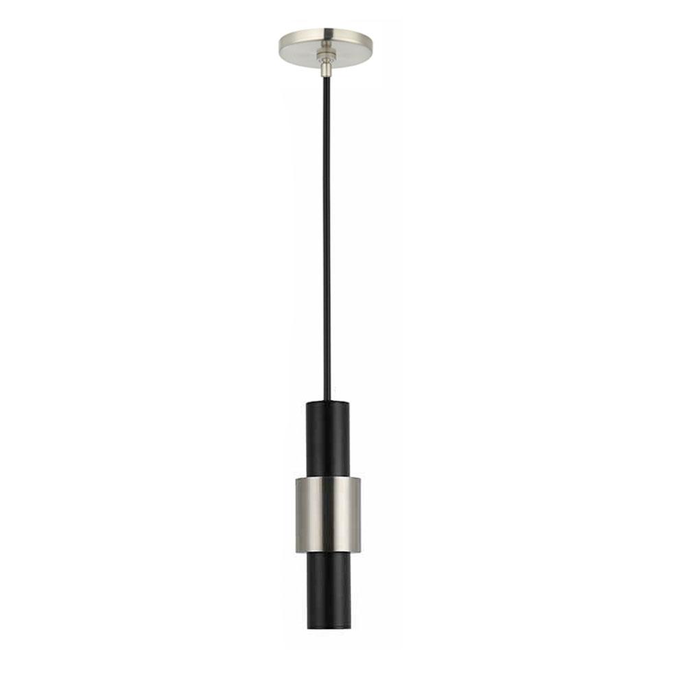 2 Tier - 2 Tone - 12" Cylinder Pendant in Black/Satin Nickel Finish with Black Rod suspension (2x12" & 2x6" threaded rods)