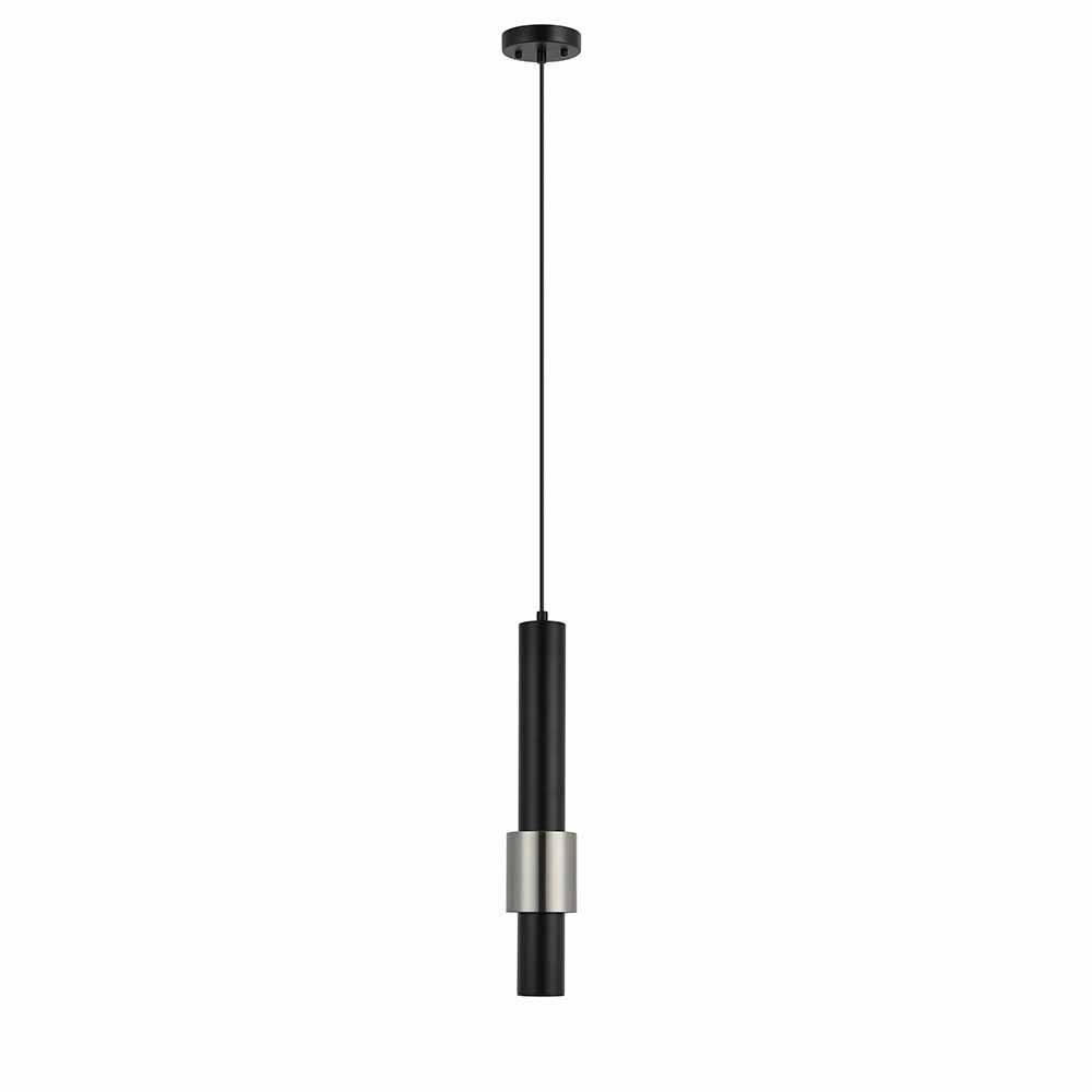 2 Tier - 2 Tone - 18" Cylinder Pendant in Black/Satin Nickel Finish with Black cord suspension.