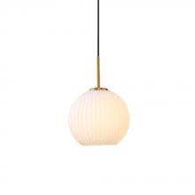 Pendant with White Ribbed Globe Glass in Black Finish with Black Cord