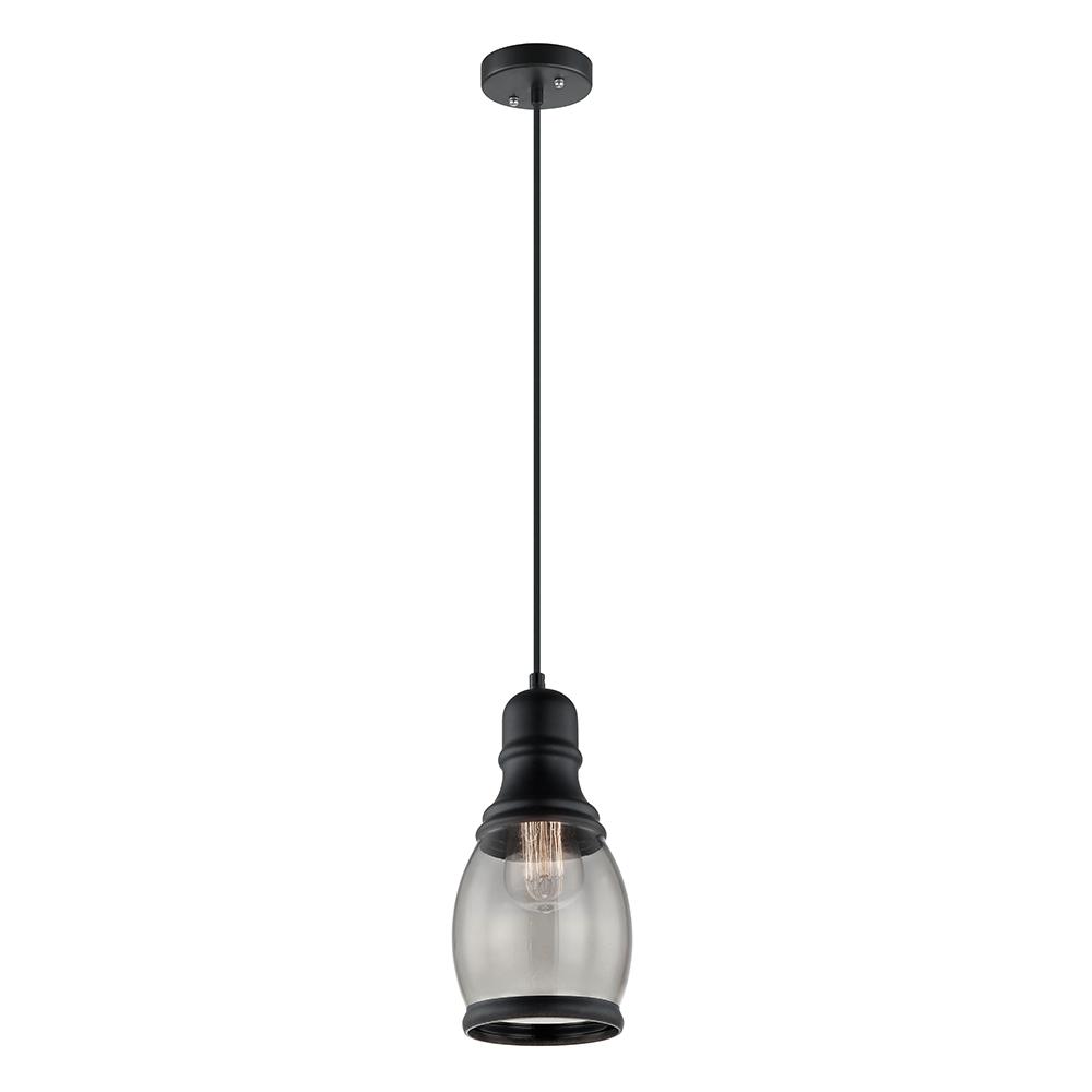 1 Light Pendant with Smoke & Smoke Black Glass in Black Finish