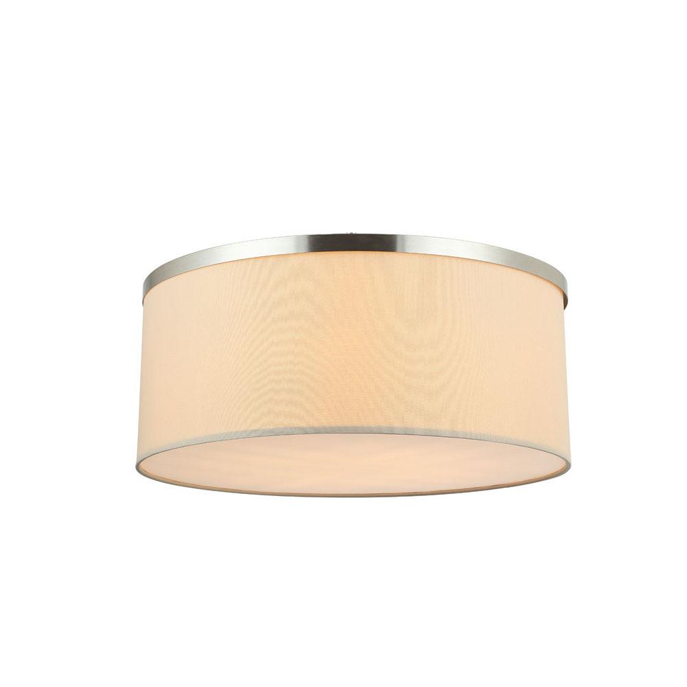 Flush Mount Shade / Natural Linen with White Fabric Bottom Lens & Satin Nickel Hardware.