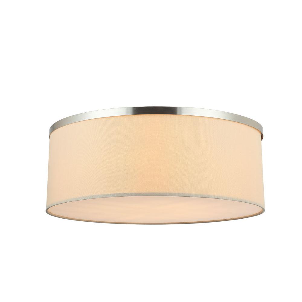 Flush Mount Shade / Natural Linen with White Fabric Bottom Lens & Satin Nickel Hardware.