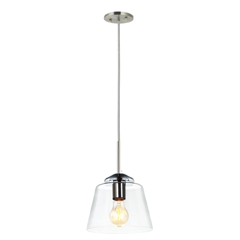 1 Light Gray Cloth Cord Pendant with Clear Glass in Satin Nickel Finish