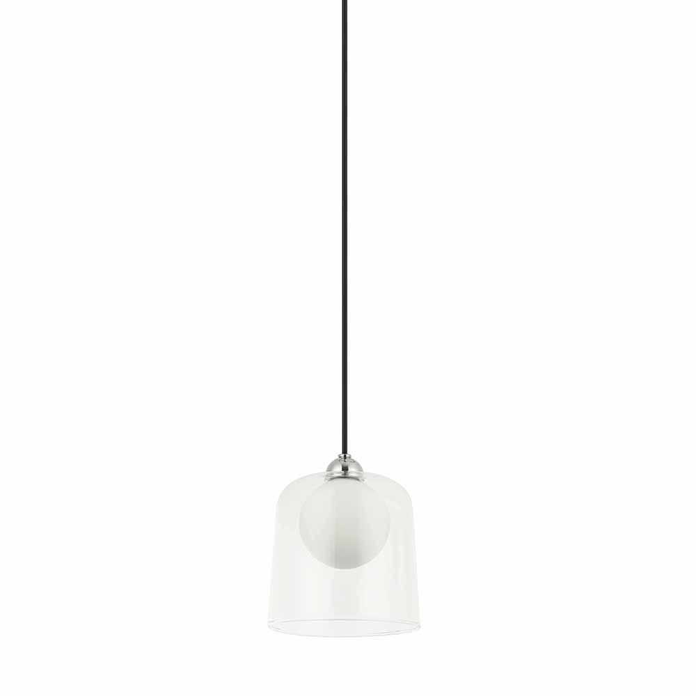 Clear Medium Dome with Inner White Globe Glass in a Polished Chrome finish with 96' Black Cloth Cord.