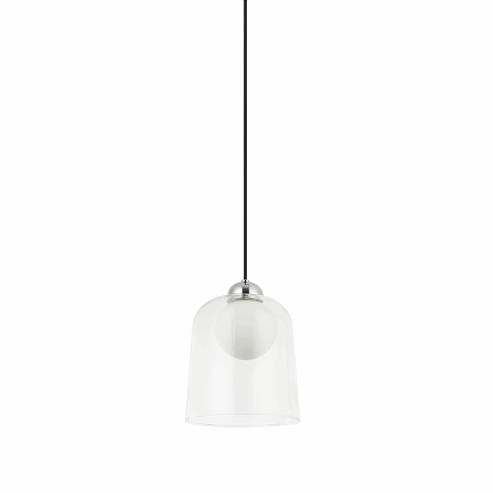 Clear Tall Dome with Inner White Globe Glass in a Polished Chrome finish with 96' Black Cloth Cord.