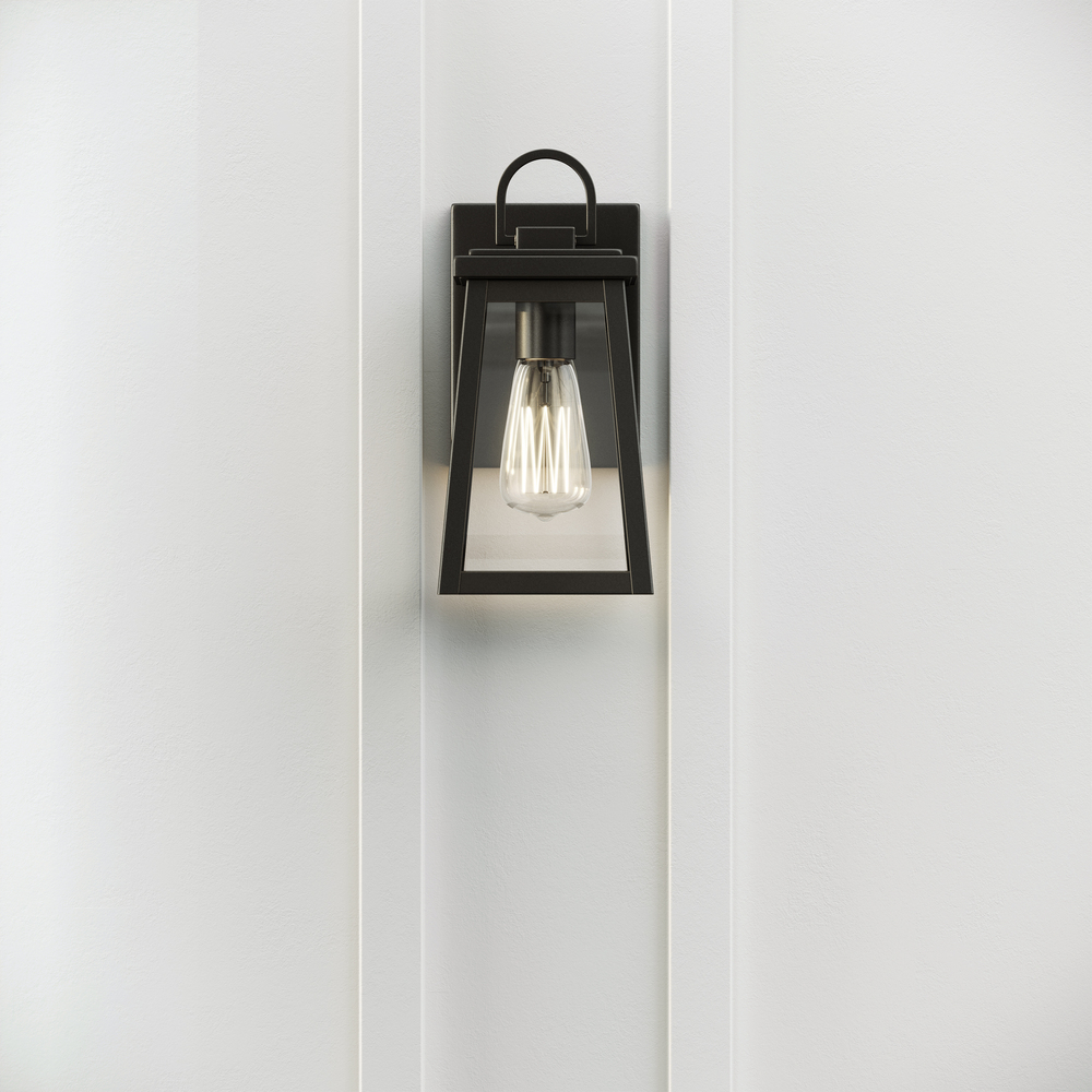 Founders modern 1-light LED outdoor exterior small wall lantern sconce in black finish with clear gl